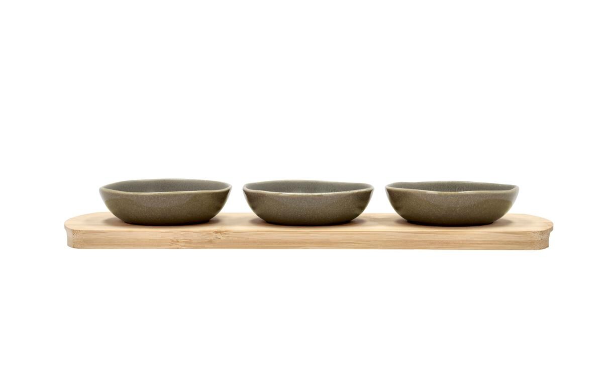 Villa Collection Bambus Tablett mit 3 Schälchen Shoku Braun