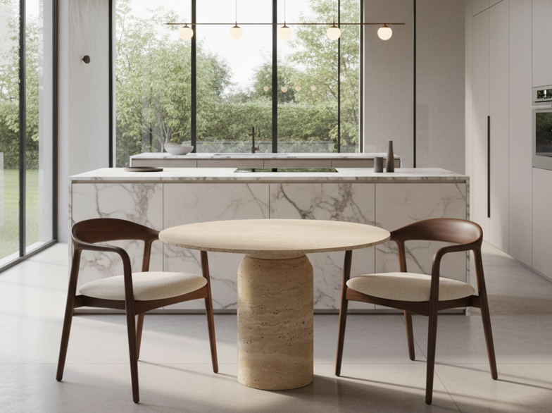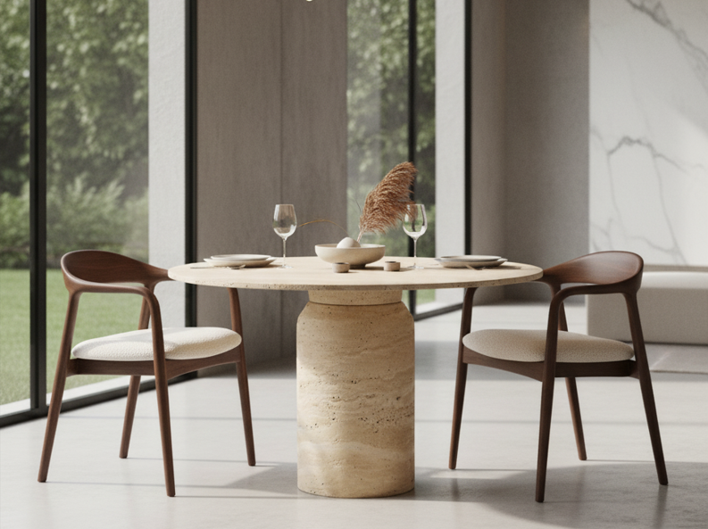 Travertin ist ein Naturmaterial, das seit Jahrhunderten für Beständigkeit steht. Der Trieste Esstisch ist robust und pflegeleicht – perfekt für den täglichen Gebrauch und gleichzeitig ein stilvoller Mittelpunkt in Ihrem Zuhause.