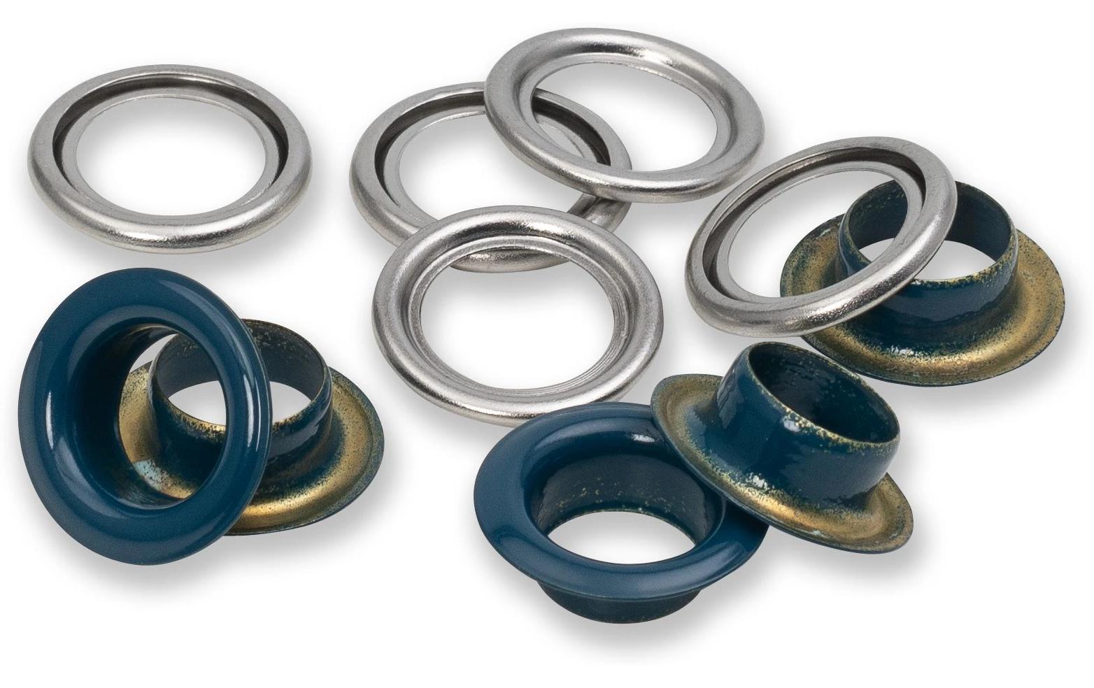 Prym Ösen mit Scheiben 20 Stück, Marine-Silber
