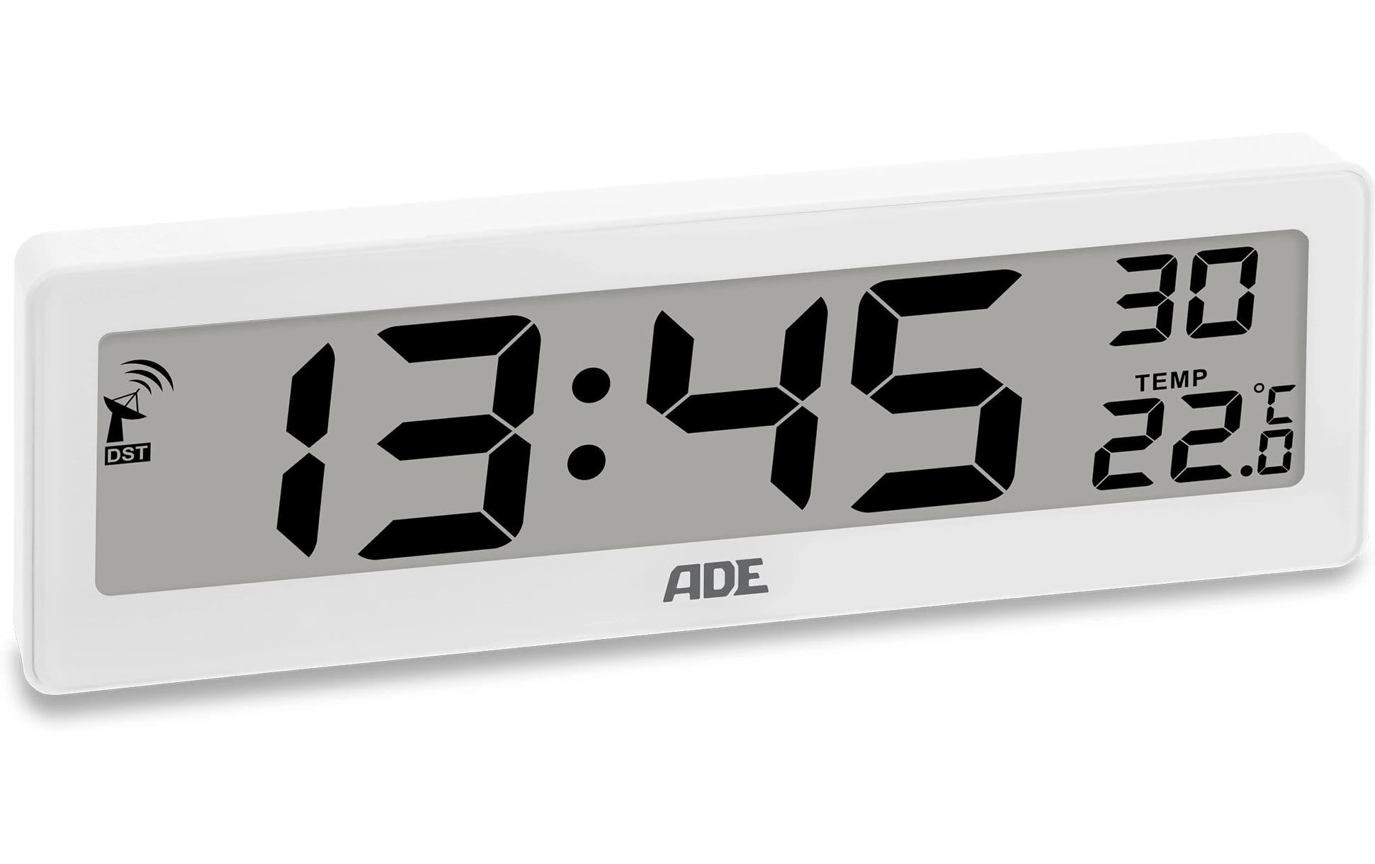 ADE Funkuhr DCF mit XXL-Ziffern digital Weiss