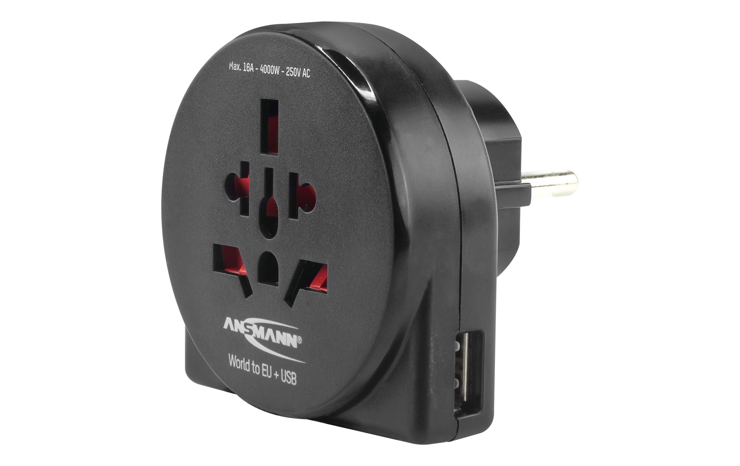 Ansmann Reisestecker World to EU + USB