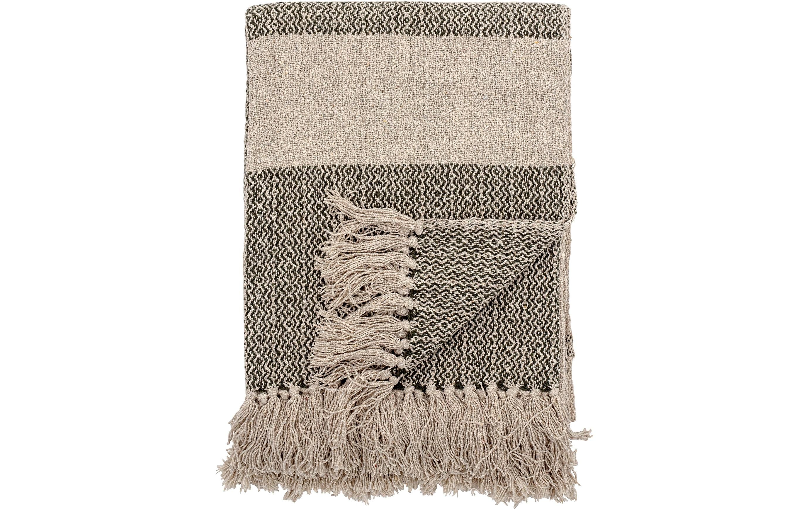 Bloomingville Decke Fidan 130 x 160 cm, Crème/Grün