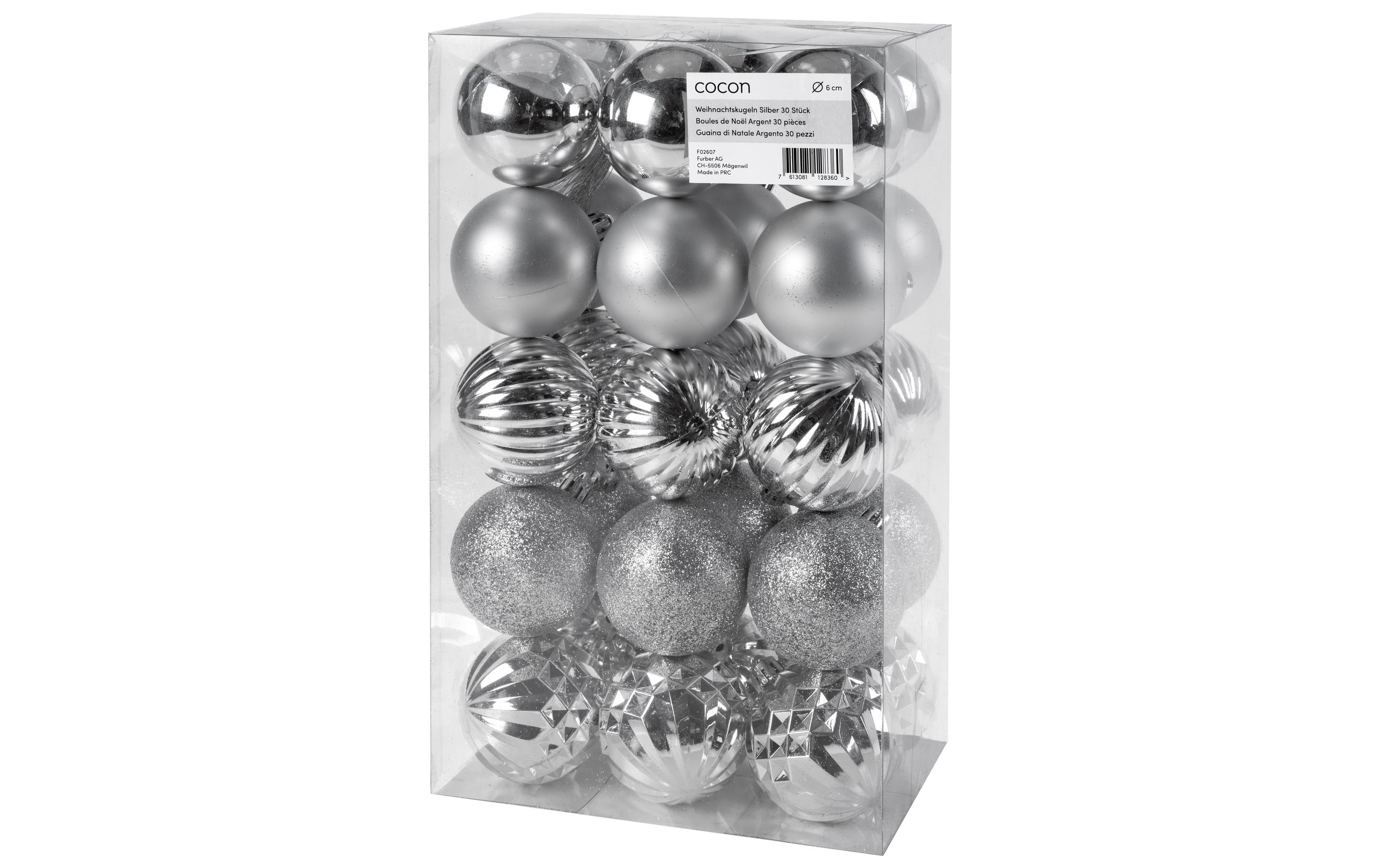 COCON Weihnachtskugel 30 Stück, Silber