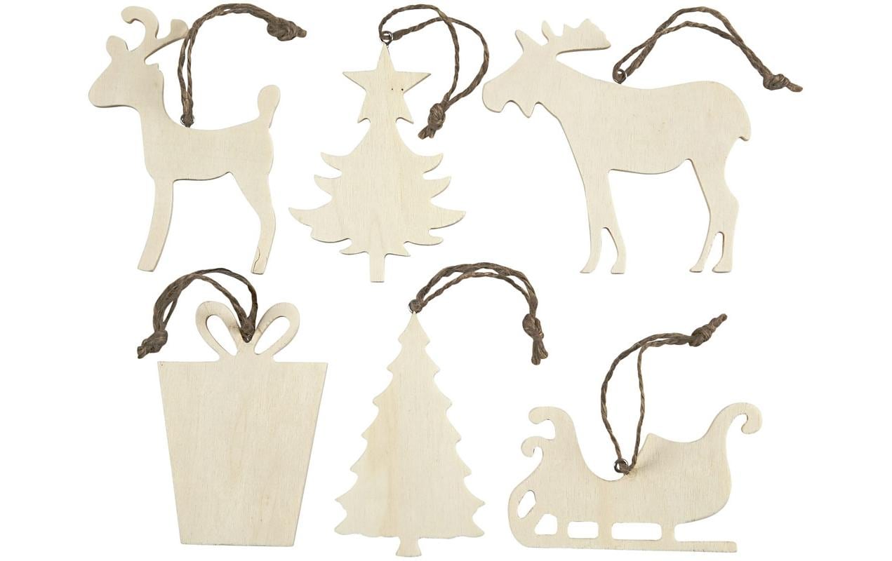 Creativ Company Deko Weihnachtsanhänger aus Sperrholz 7 - 9 cm, 6 Stück