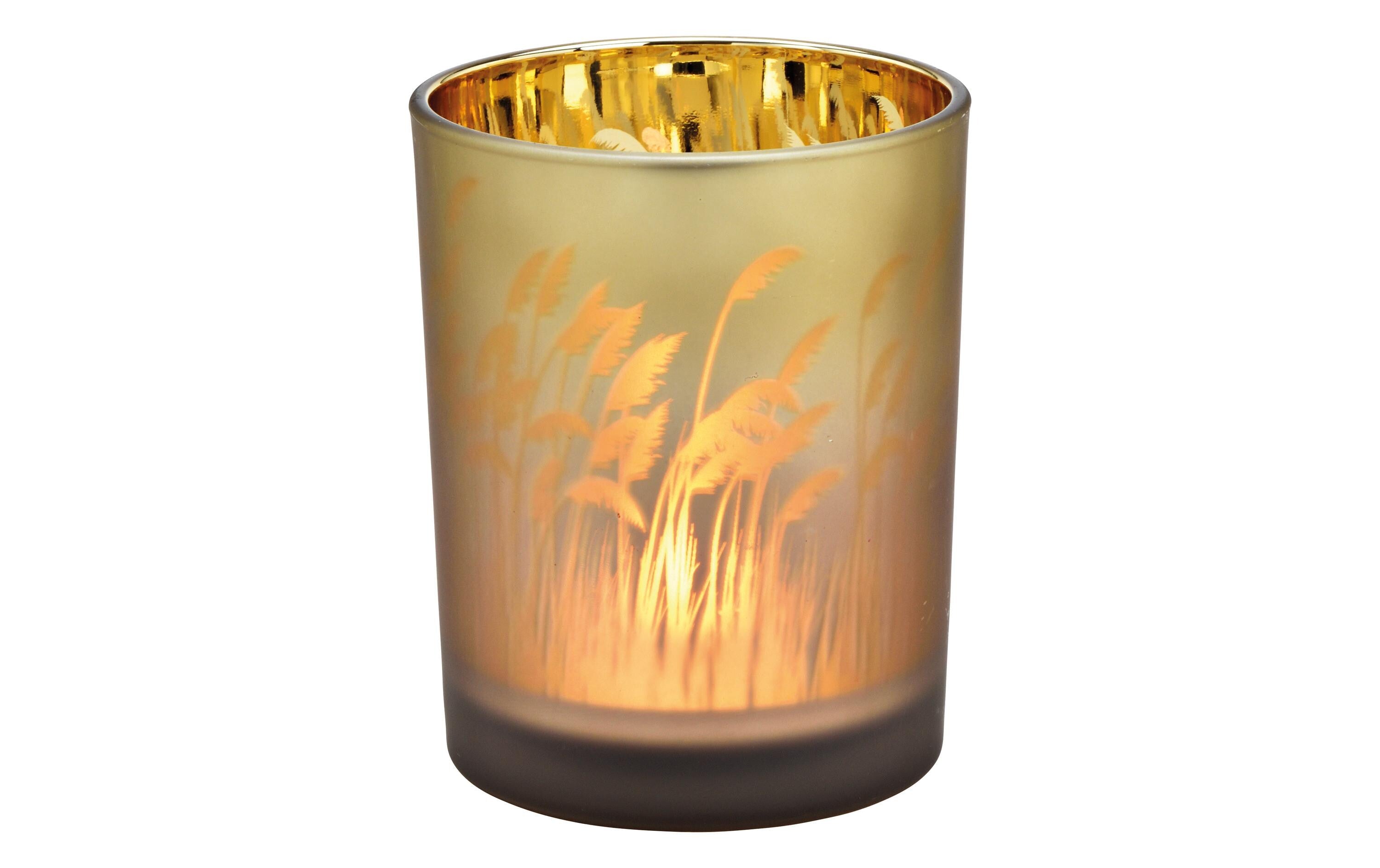 G. Wurm Windlicht Pampasgras 12 cm, Goldbraun