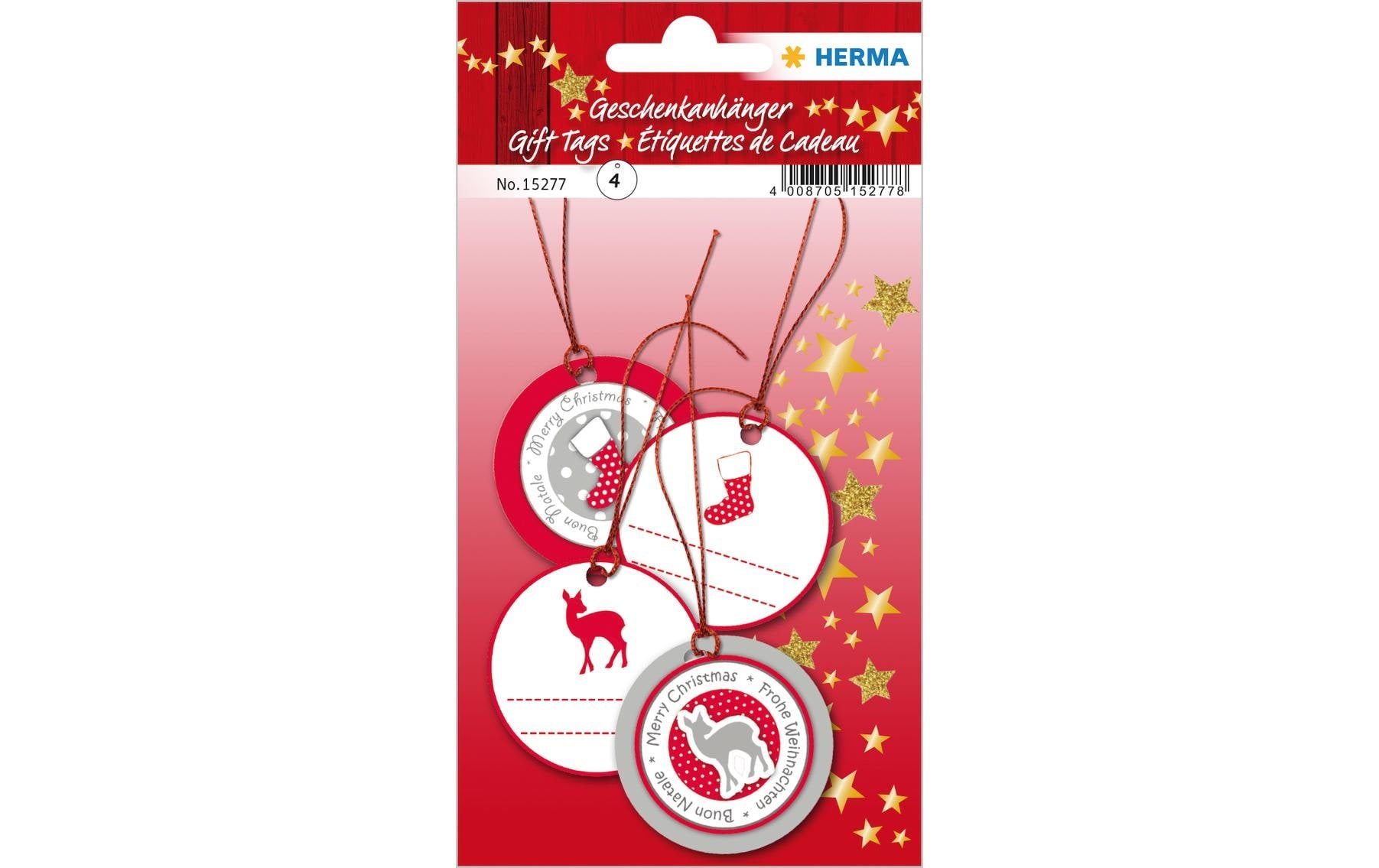 Herma Stickers Geschenkanhänger Weihnachten Ø 5 cm, Rot, 4 Stück