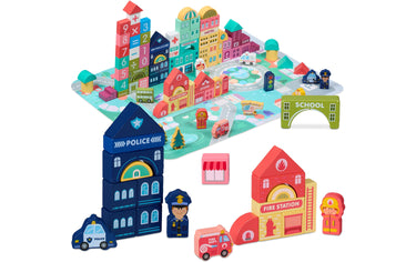 relaxdays Holzbausteine Stadt im Set