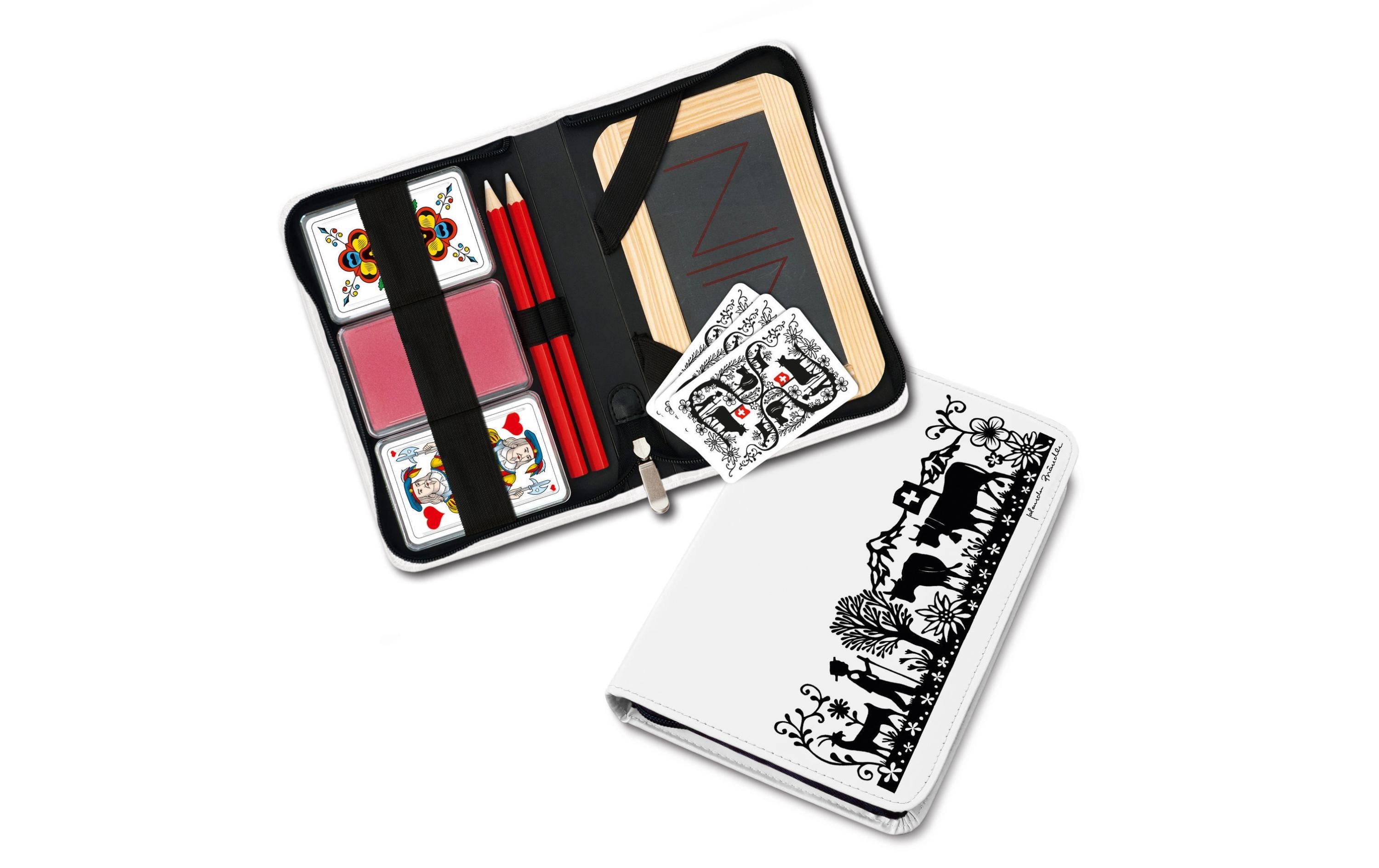Jassetui weiss mit Schweizer Motiv