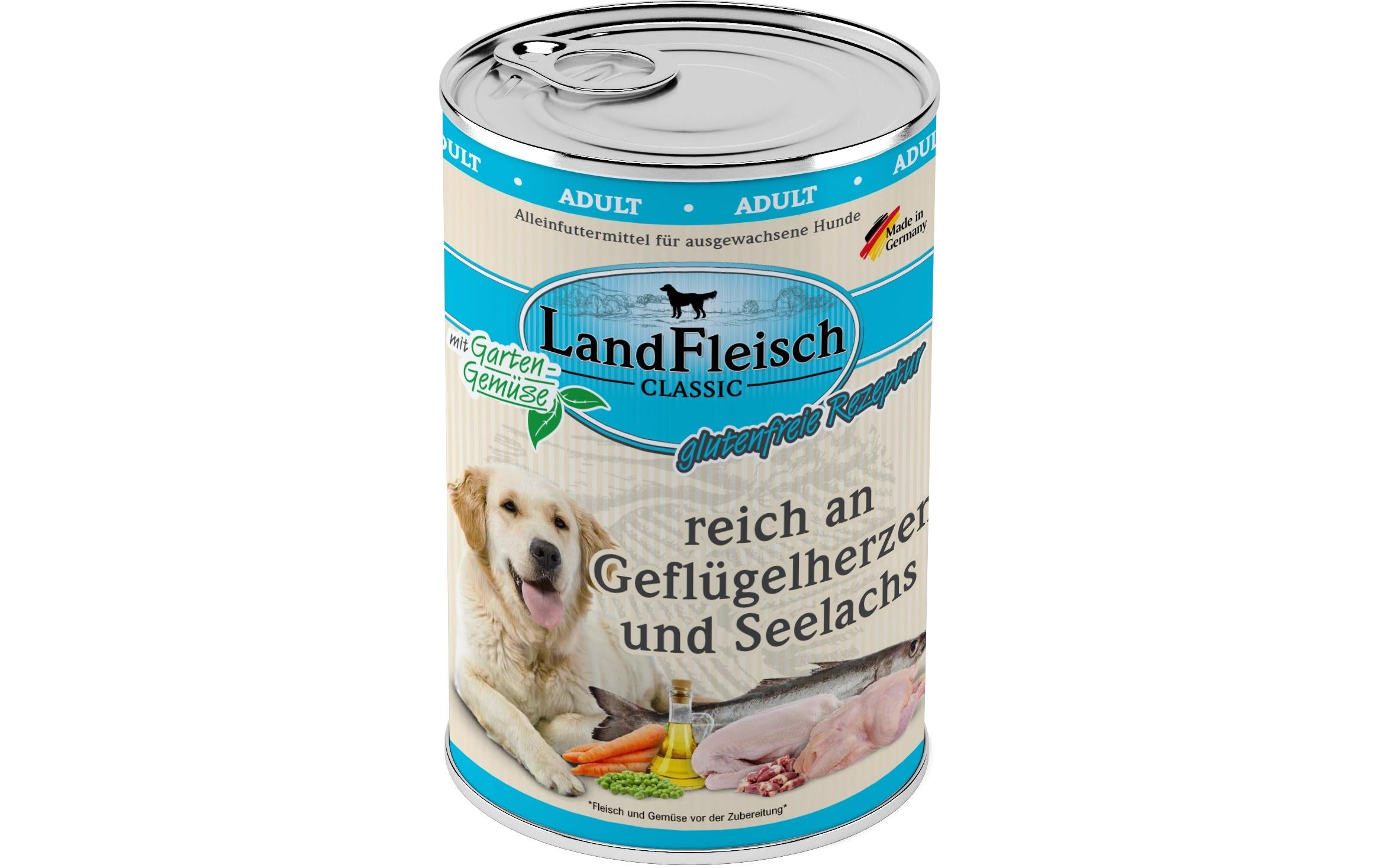 LandFleisch Nassfutter Classic Geflügelherzen und Seelachs, 400 g