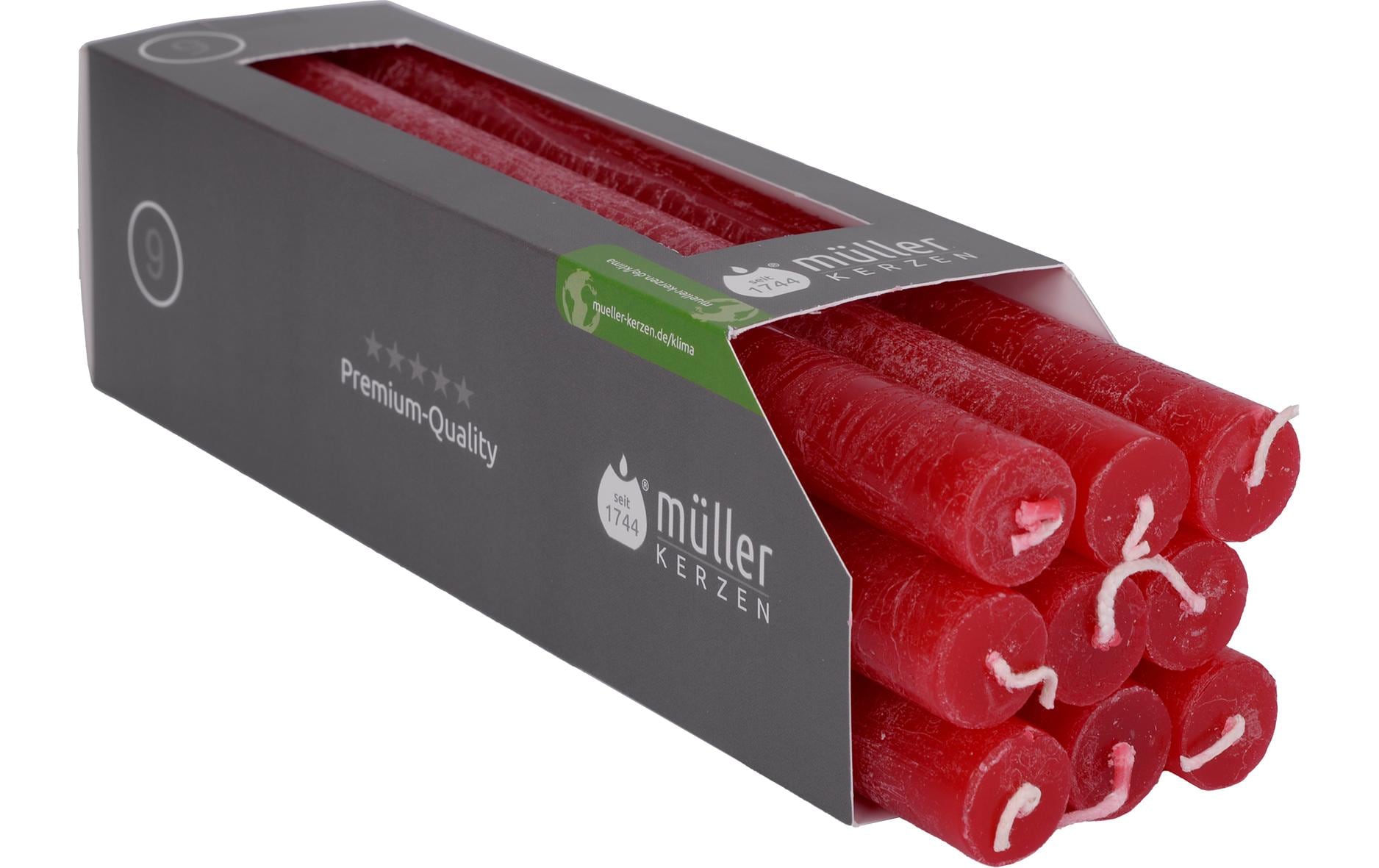 müller Kerzen Stabkerze Polar 25 cm x 2.2 cm, Rot, 9 Stück, Rot