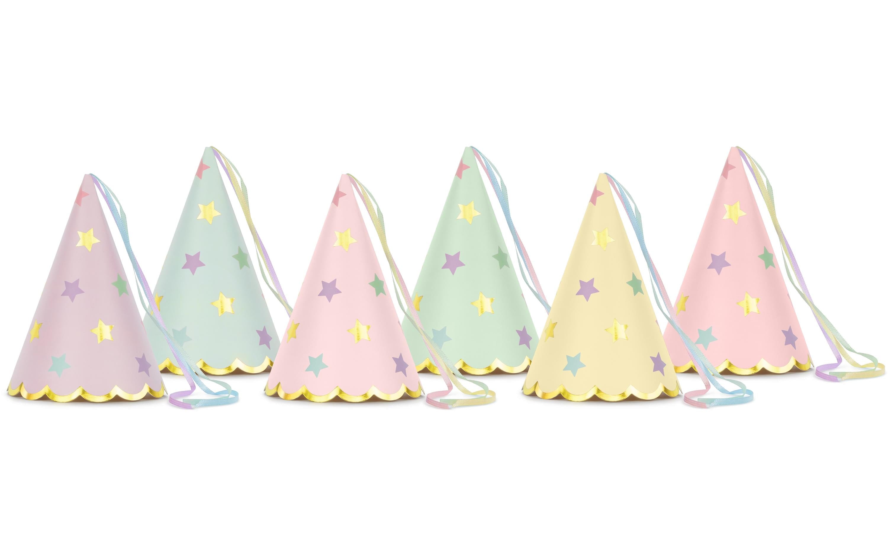 Partydeco Partyhüte Sterne pastellfarbig, 14.5 x 10 cm, 6 Stück
