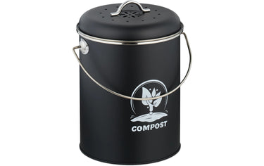 relaxdays Komposteimer mit Geruchsfilter 5.5 l, Schwarz/Silber