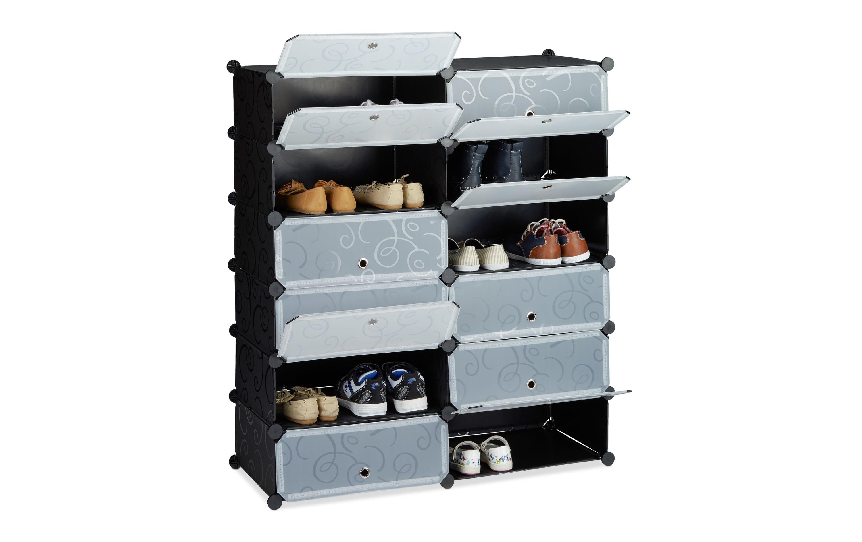 relaxdays Schuhschrank mit 12 Fächern Schwarz/Transparent
