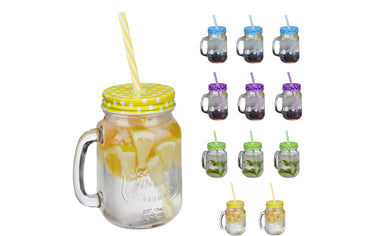 relaxdays Trinkglas Summer 500 ml, 12 Stück, Mehrfarbig