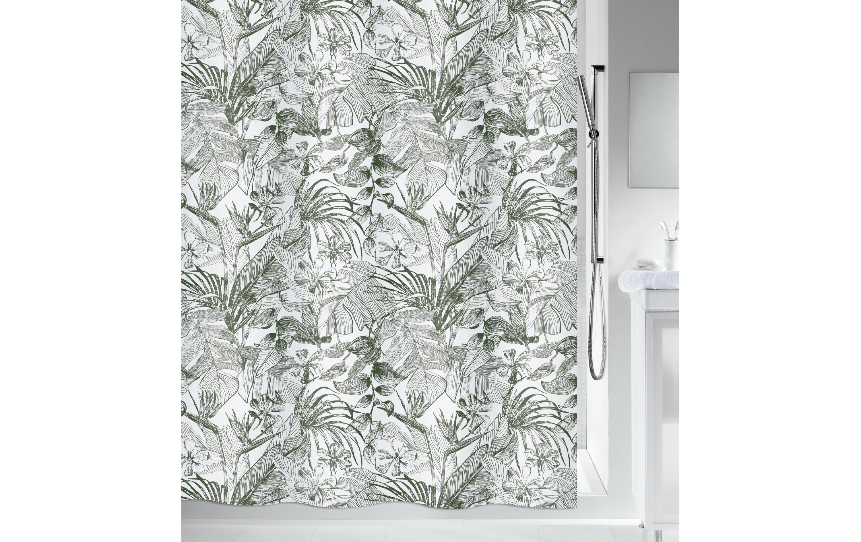 spirella Duschvorhang Tropic 180 x 200 cm Weiss; Dunkelgrün