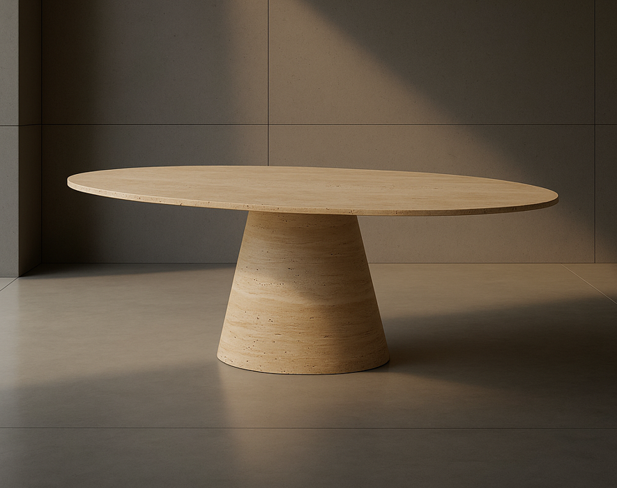 Trapani Esstisch 100x240 cm oval aus Travertin - Eleganz in Naturstein