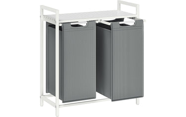 VASAGLE Wäschekorb mit Ablage 2 x 46 l, Grau/Weiss