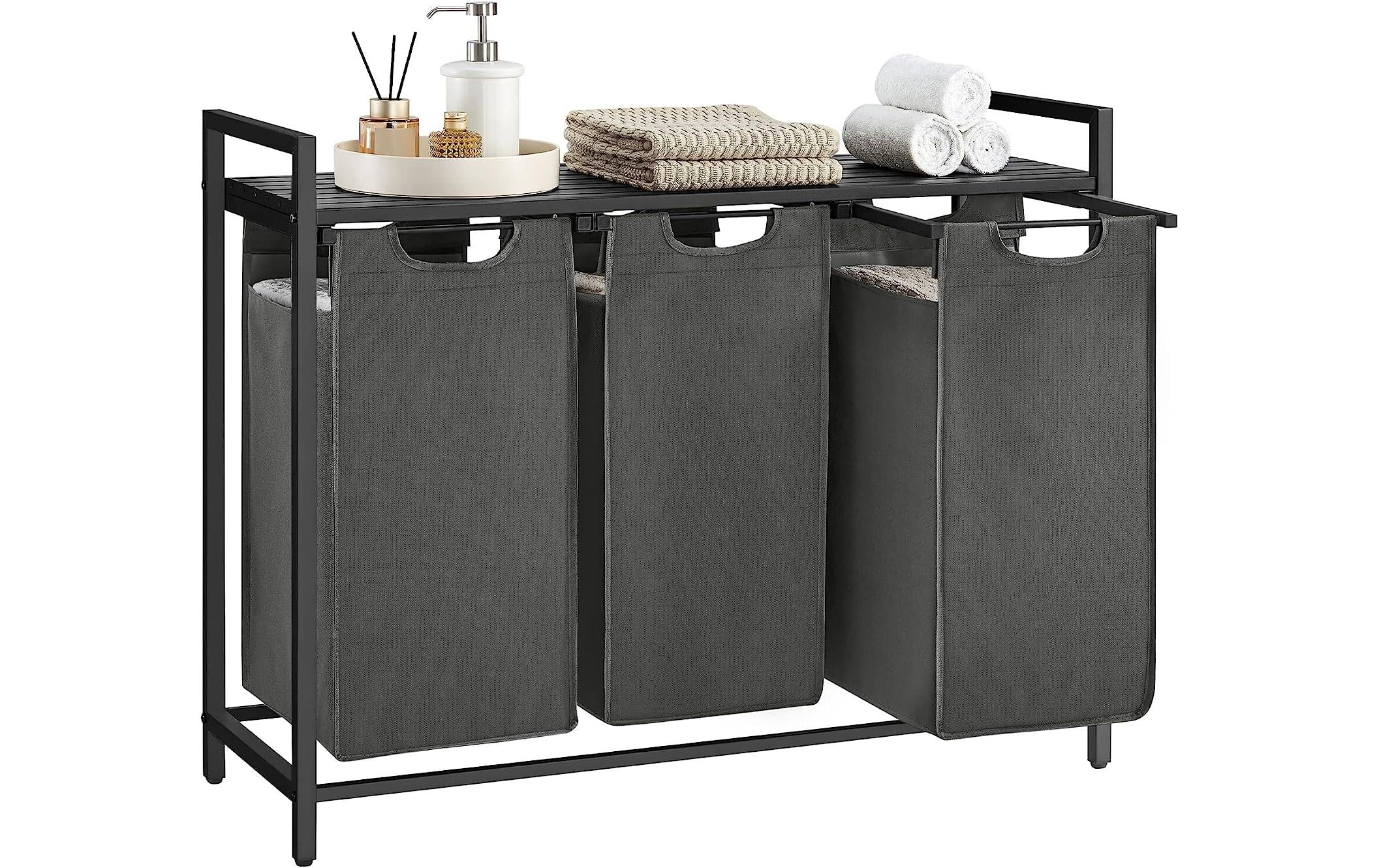 Heimat Vasagle Wäschekorb mit Ablage Grau, 3x 38L